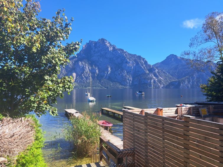 Traunkirchen: Entzückendes, verträumtes Haus mit viel Liebe zum Detail! Traumhafter Seeblick schöne, gemütliche Villa "Villa Rose", auf 2 Stockwerken. Im Ortsteil Traunkirchen, sonnige, erhöhte Lage, 200 m vom See. Zur Alleinbenutzung: schöner Garten, Liegewiese. Terrasse, Gartenmöbel. Im Hause: Zentralheizung, Waschmaschine, Wäschetrockner. Parkplatz beim Haus. Einkaufsgeschäft 1 km, Restaurant 1 km, Bäckerei 1 km, Café 1 km, Bushaltestelle 150 m, Bahnstation 1 km, Badesee 200 m. Golfplatz (18 Loch) 19 km, Segelschule 900 m, Tennis 1 km. Nahe gelegene Sehenswürdigkeiten: Museum Hallstatt 26 km, Greisslerei Traunkirchen 3 km, Johannesbergkapelle 3 km, Schiffahrt Loidl 3 km. Bekannte Skigebiete sind gut erreichbar: Familienskigebiet Feuerkogel 9 km. Bekannte Seen in der Umgebung sind gut erreichbar: Traunsee 200 m. Eigener kleiner Badeplatz kann unter https://www.platzamsee.com/traunsee-02 zugebucht werden. Bahngleis neben dem Haus.