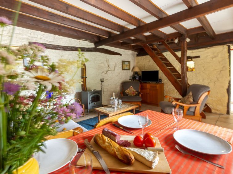 Huis 3-kamers 65 m2 op 2 verdiepingen. Mooi en rustiek ingericht: kleine woonkamer met TV, CD-speler en houtkachel. Uitgang naar het terras. Keuken (4-pits kookplaat, oven, afwasmachine, magnetron). Uitgang naar het terras. Aparte WC. Bovenverdieping: (steile trap), 1 2-pers. kamer met afgeschuinde daken. Met afgeschuinde daken, 1 kamer met 2 bedden (90 cm). Douche/WC. Terrasmeubelen. Mooi uitzicht op het landschap en het kanaal. Ter beschikking: wasmachine. Internet (WiFi, gratis). Parkeerplaats. Maximaal 2 huisdieren/honden toegestaan.